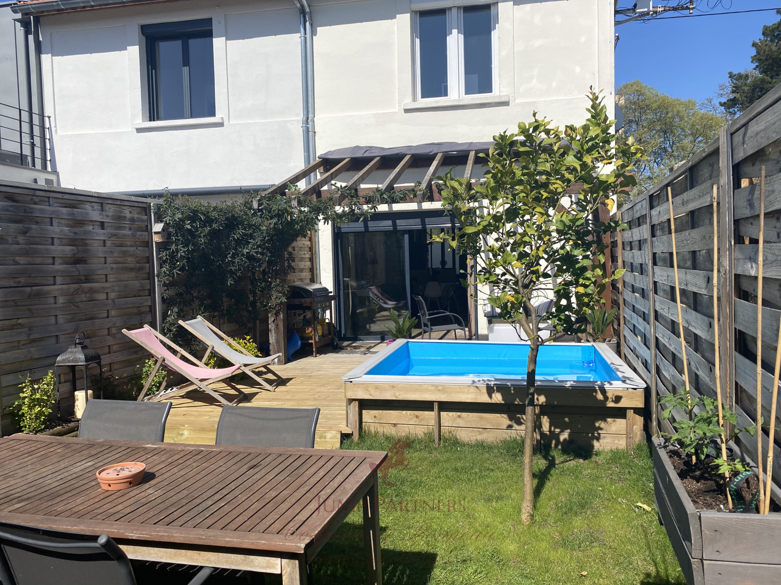 En exclusivité : Bordeaux - Caudéran. Belle maison avec jardin, composée au rez-de-chaussée d'un beau séjour exposé plein Sud, un espace salle à manger, une cuisine américaine avec une verrière industrielle. À l'étage, 3 chambres avec une salle de bains. La maison est en très bon état, le charme de l'ancien a été conservé avec un beau parquet. Une terrasse et un jardin de 60m2 avec un bassin, exposés plein sud. Stationnement possible. Coup de coeur assuré.