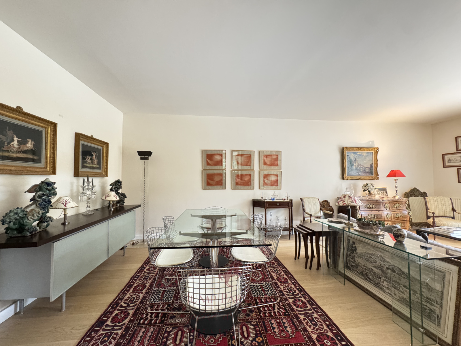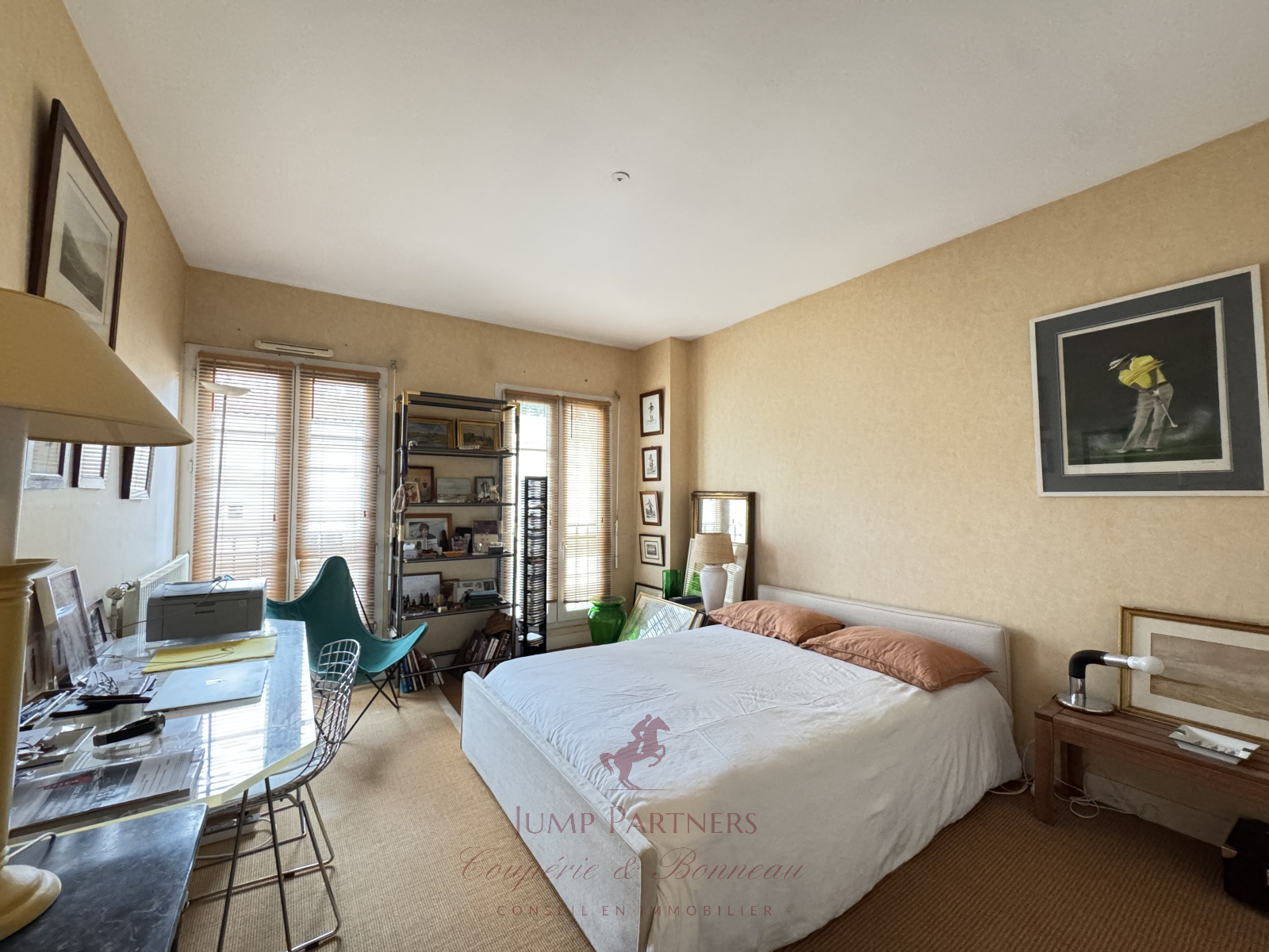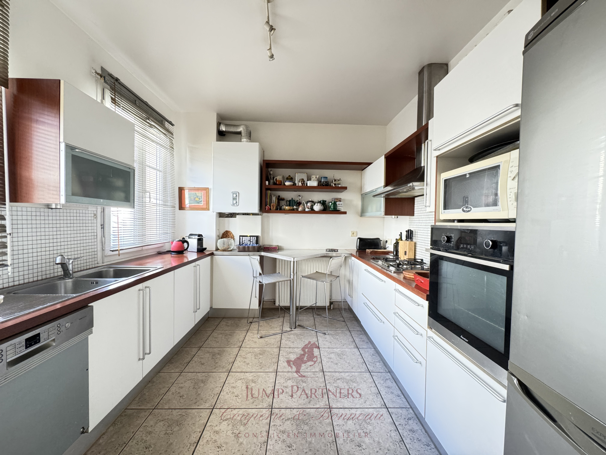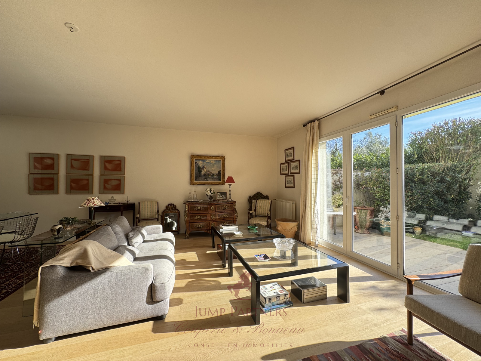 Elle dispose d’une cuisine indépendante et d’un vaste double séjour lumineux ouvrant sur le jardin.