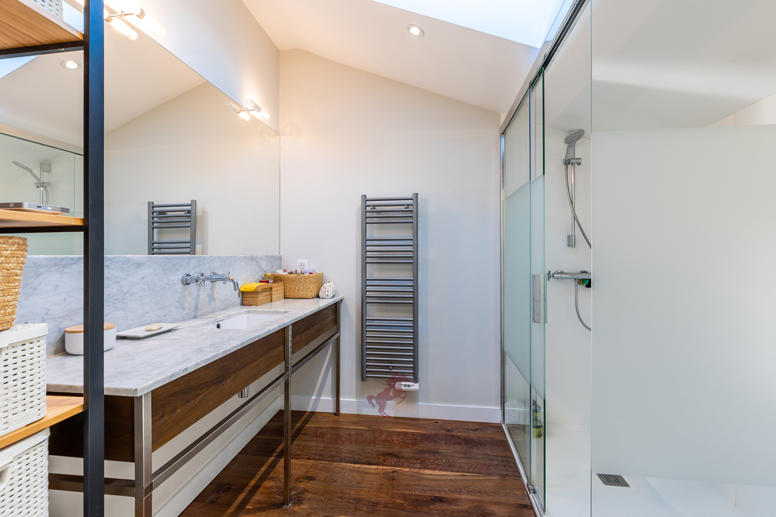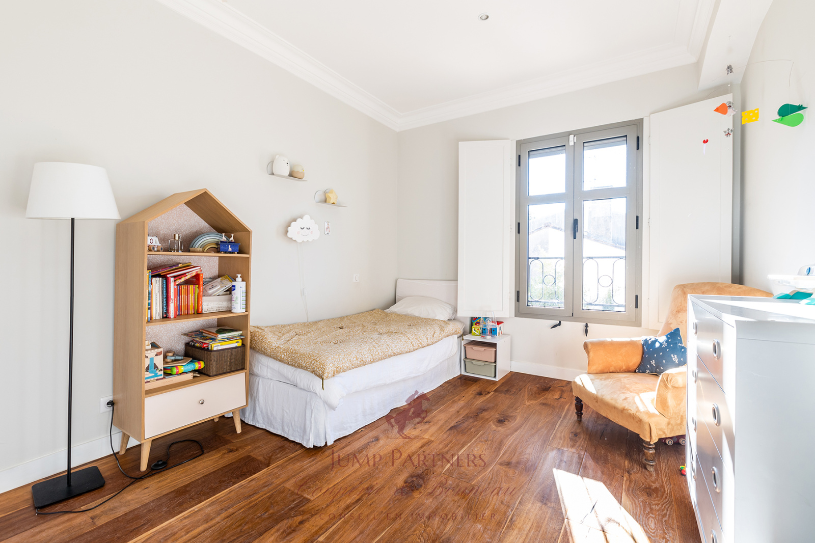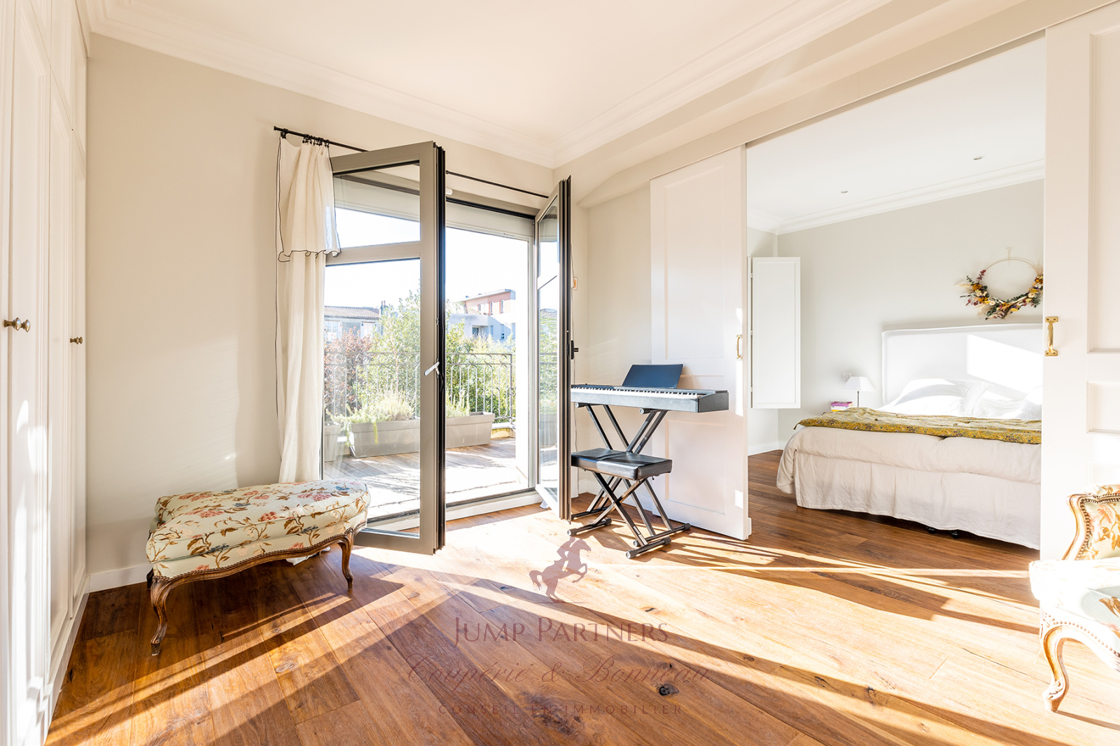Un étage "parents" se compose d'une suite parentale avec terrasse sans vis à vis plein Sud surplombant le jardin, un bureau et une belle chambre.