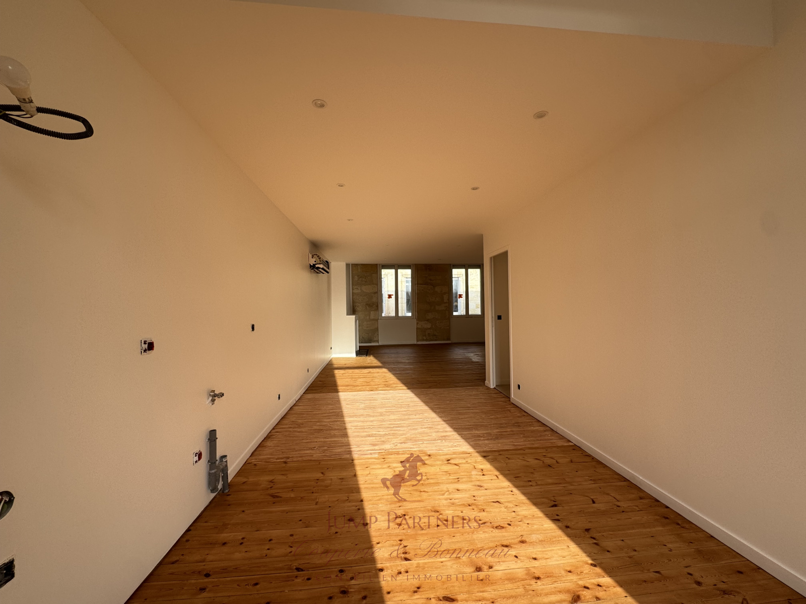 À deux pas du tram Fondaudège – Muséum et du Jardin Public, superbe duplex entièrement rénové avec une entrée indépendante dans un bel immeuble en pierre (copropriété de 2 lots) ayant conservé son charme de l'ancien (parquet/cheminée).