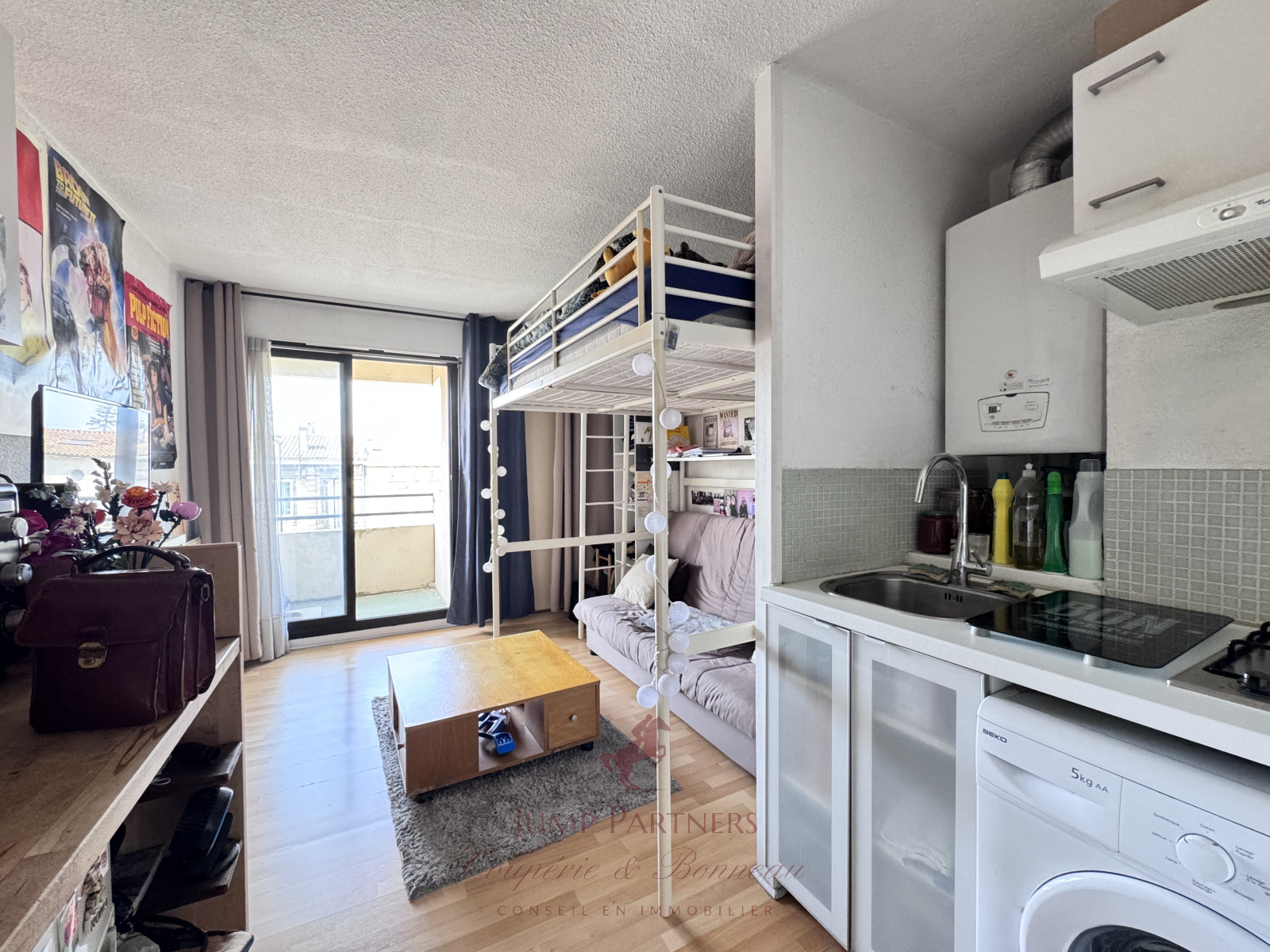 L'appartement se compose d’un séjour lumineux avec cuisine américaine, de rangements intégrés ainsi que d’une salle de bains avec toilettes. Aucun travaux n’est à prévoir, le bien est en excellent état.