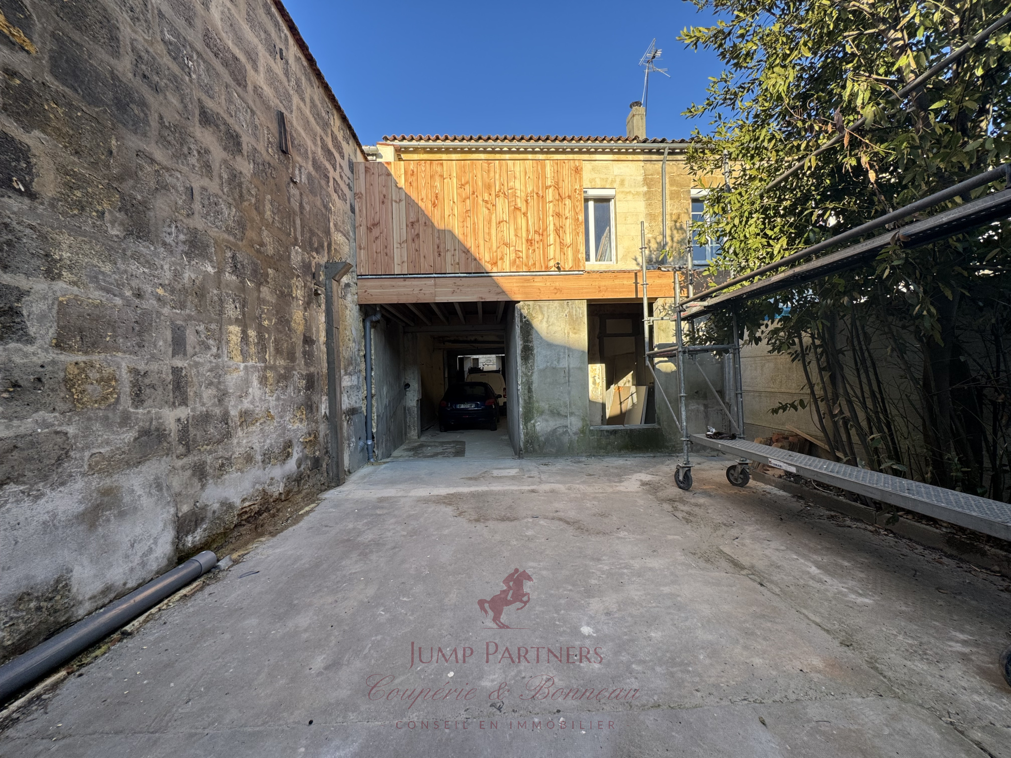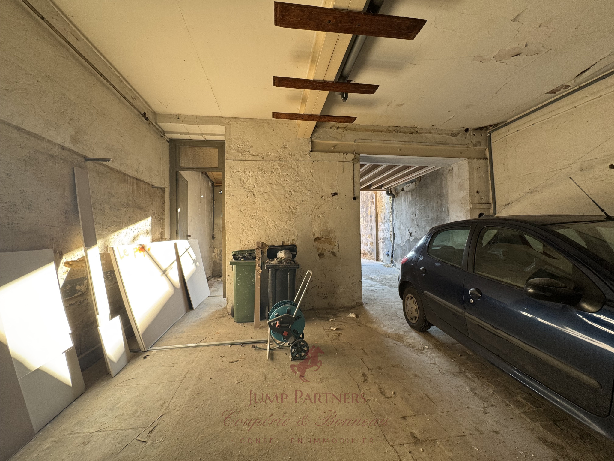 Une grande entrée de garage donnant sur 2 très grandes pièces avec accès direct et de plain pied au jardin ainsi qu'à un chai en R+2.