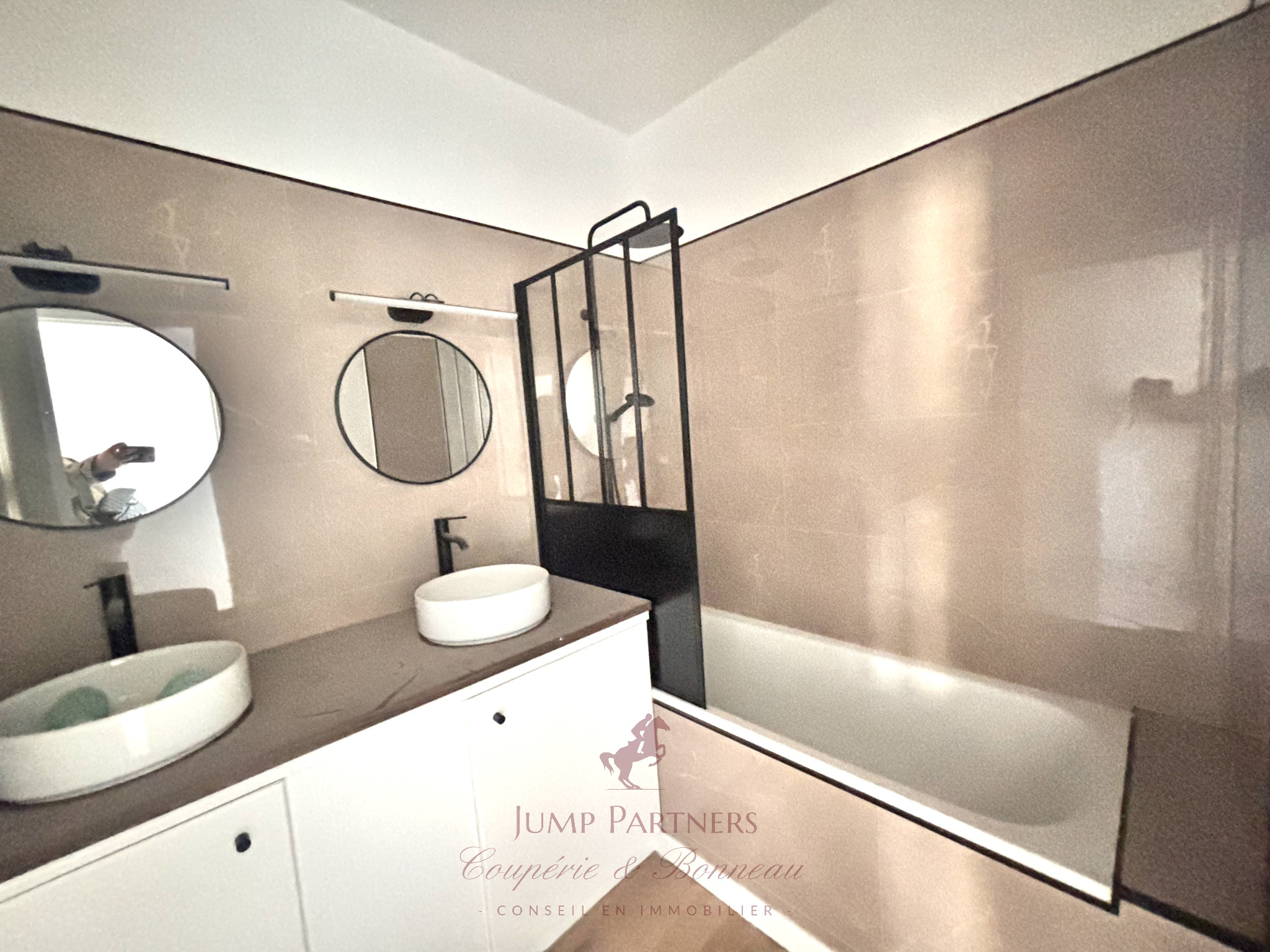 2 chambres sans vis-à-vis et une salle d'eau avec double vasques.