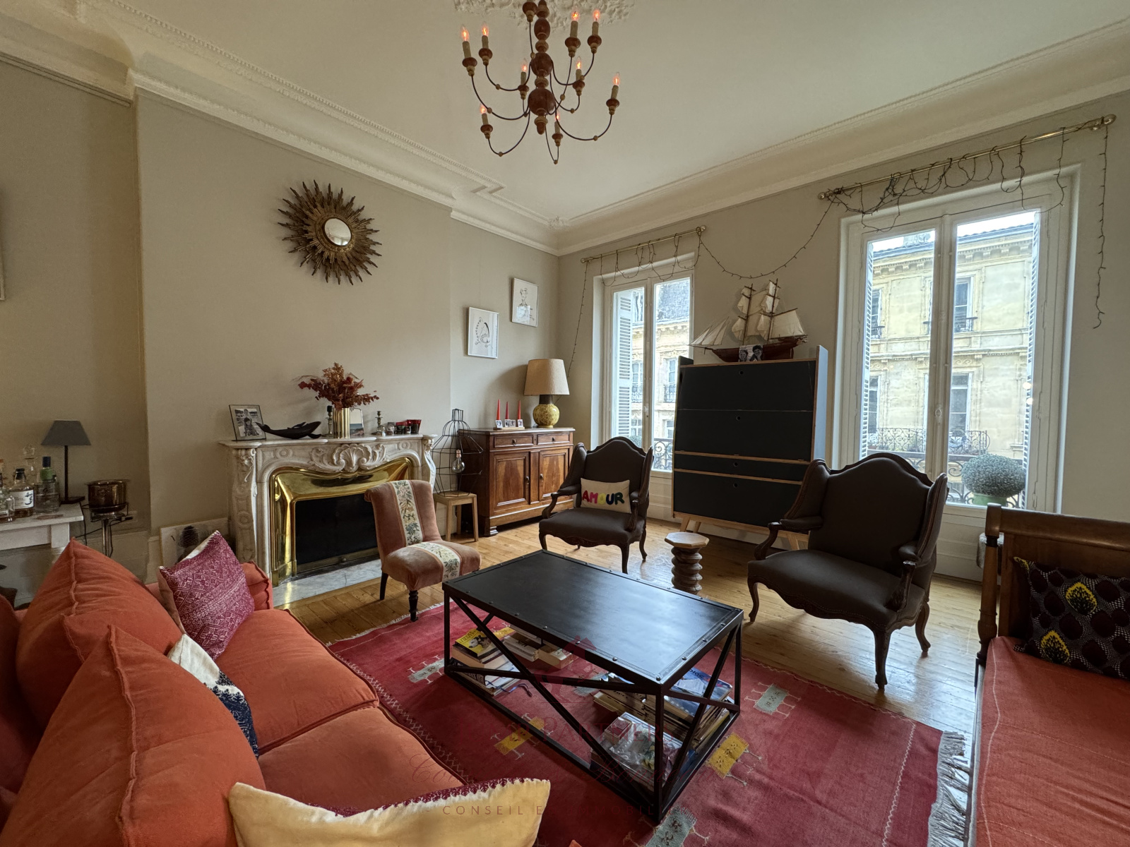 Bordeaux (33000)Au cœur d’un immeuble haussmannien de prestige avec ascenseur, cet appartement traversant de 200 m² (196,42 m² Loi Carrez) offre une alliance parfaite entre cachet de l’ancien et confort moderne.