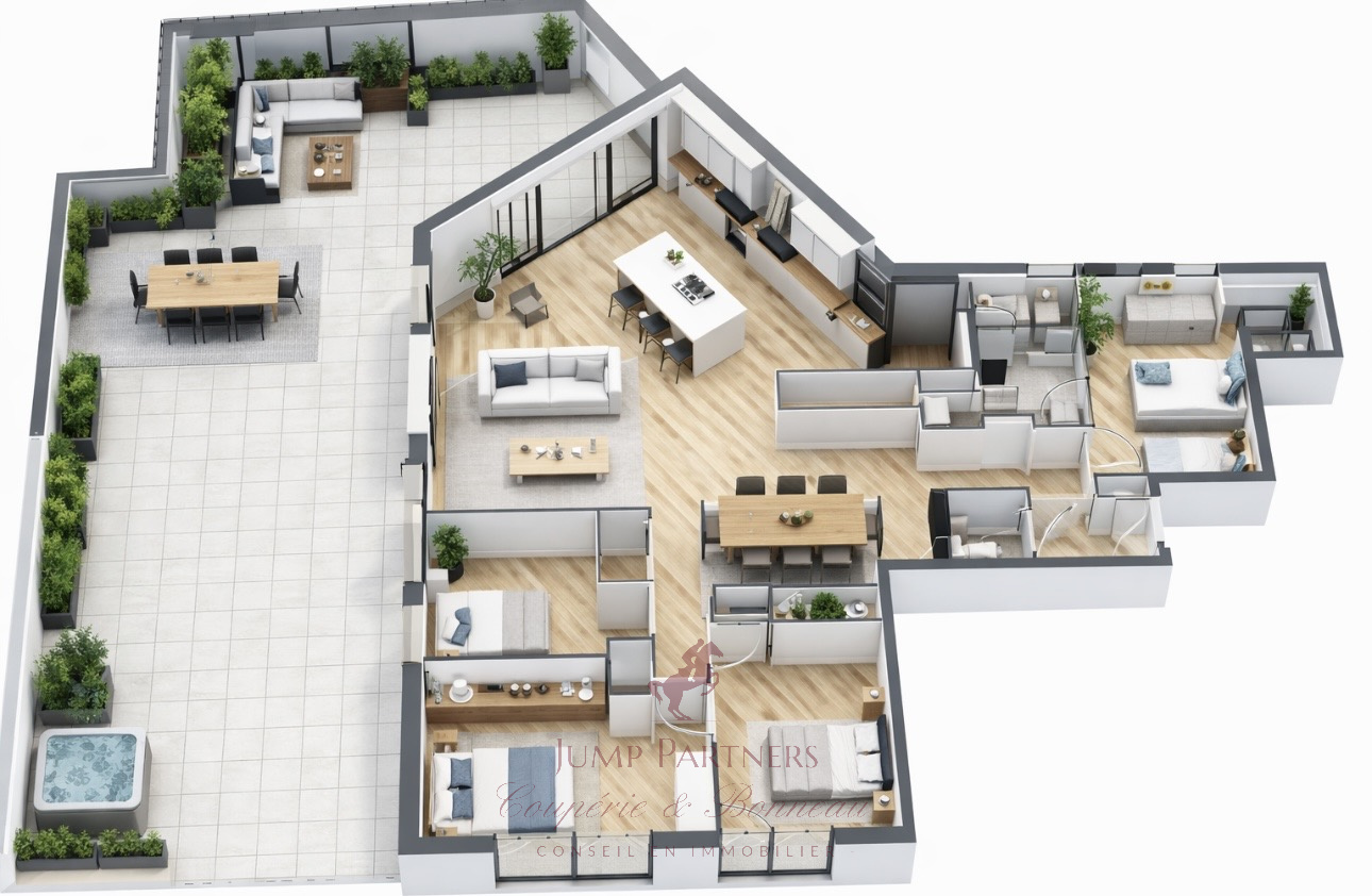 En dernier étage, il vous offre une vue dégagé et une terrasse de 99m2, un lieu de vie supplémentaire sans vis-àvis.